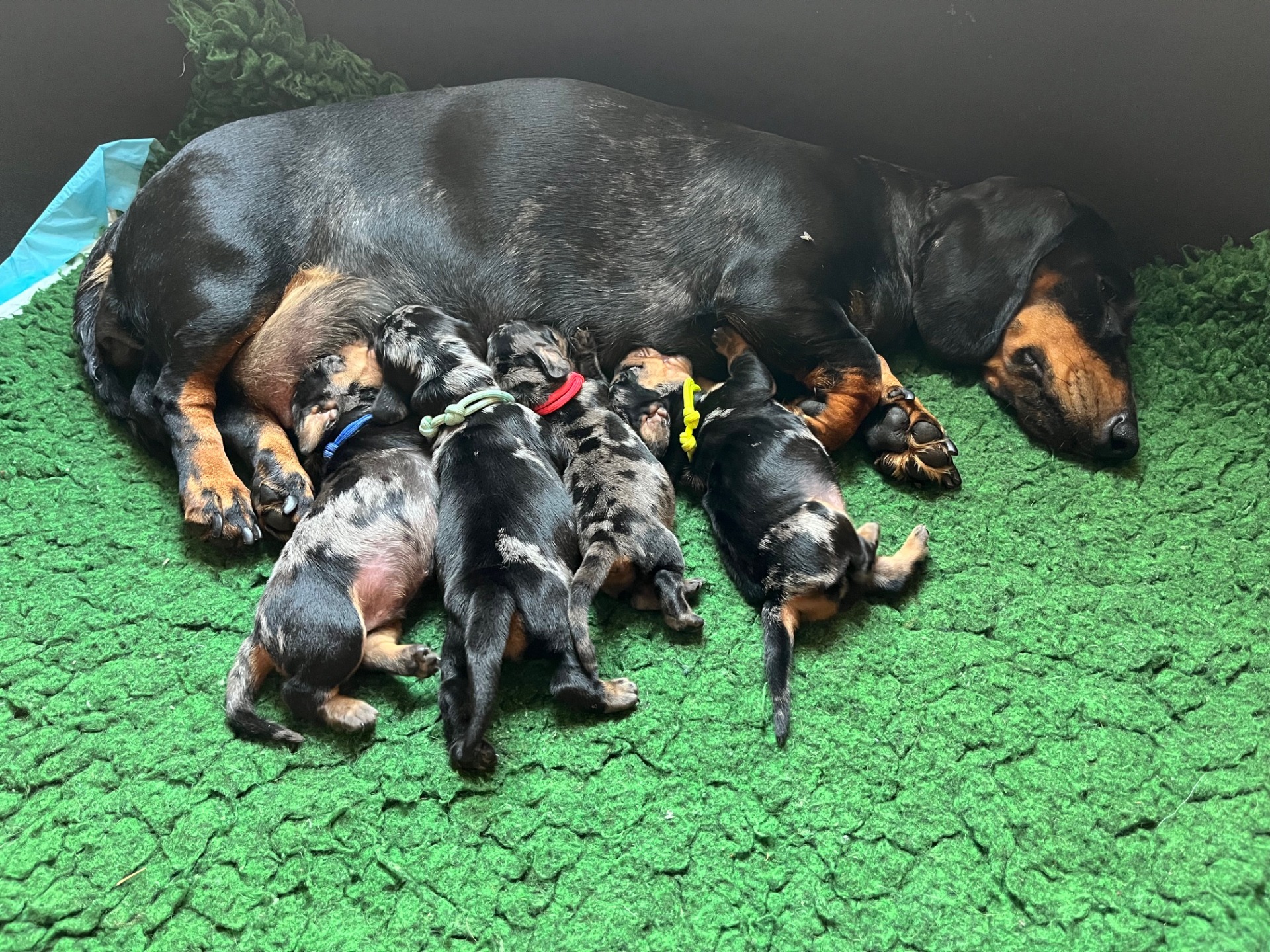 De pups van Elodie zijn intussen verhuisd naar hun nieuwe baasjes.
