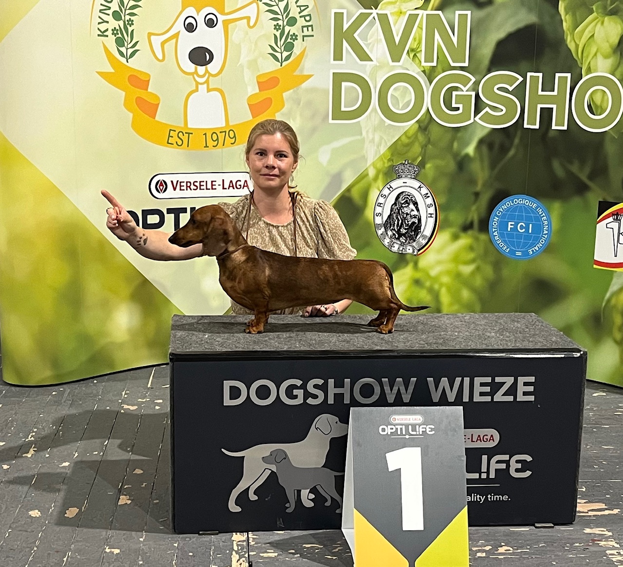 In de lente van 2025 slaagde Nitty erin om in Frankrijk (Amiens) de beste van alle teckels te worden en dit vanuit tussenklasse dus op zeer jonge leeftijd. Heel trots op ons poppetje!!